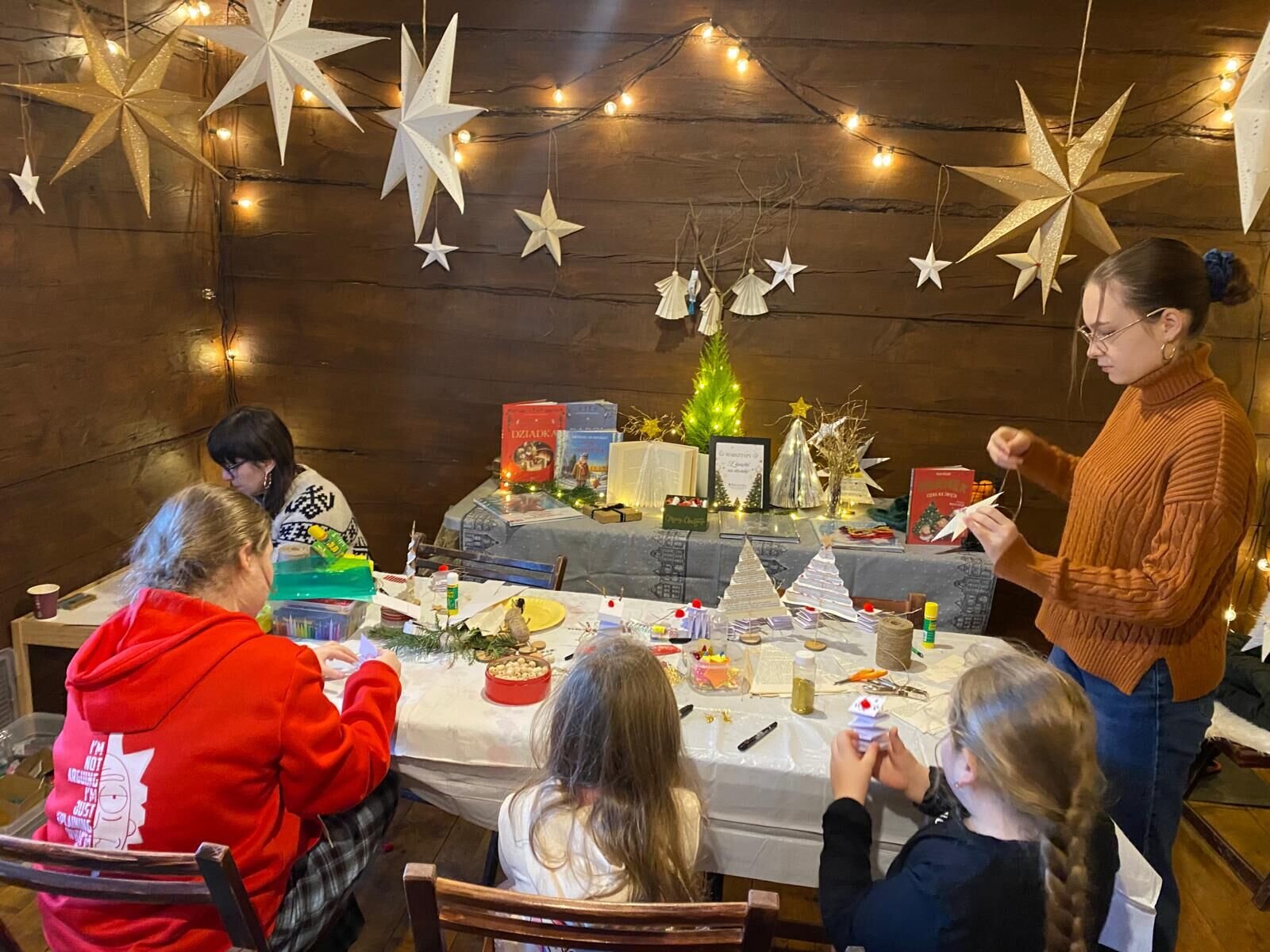 13 grudnia, w magicznej scenerii Świątecznej Osady pod Zamkiem, podczas Jarmarku Bożonarodzeniowego zorganizowanego przez Zamek Królewski w Niepołomicach, odbyły się wyjątkowe warsztaty świąteczne pod hasłem „Z książki na choinkę”. Spotkanie poprowadziły bibliotekarki z Biblioteki Publicznej w Niepołomicach, które zaprosiły uczestników do świata papierowej wyobraźni, ekologii oraz twórczej radości, łącząc literaturę z rękodziełem i świąteczną atmosferą.