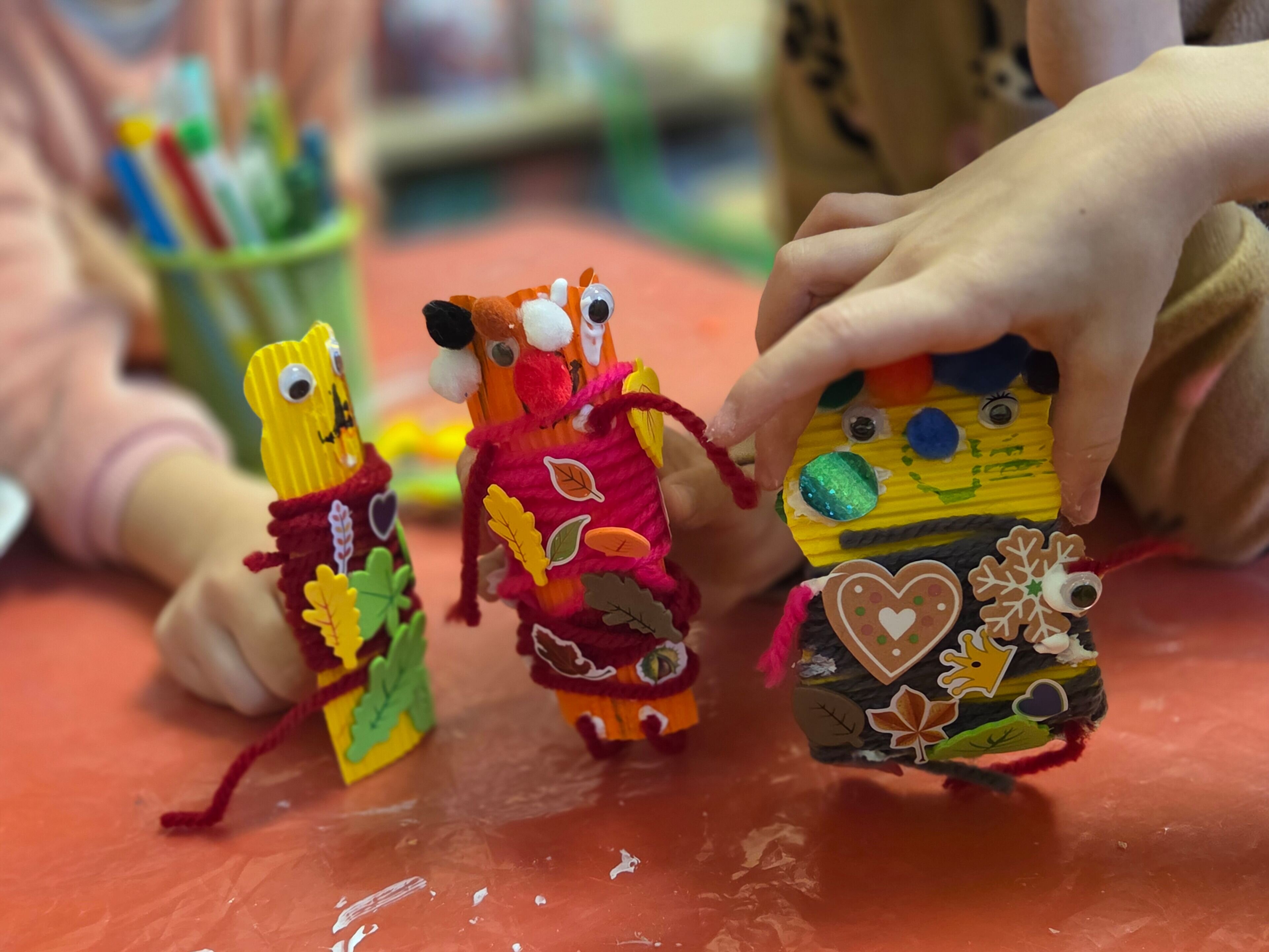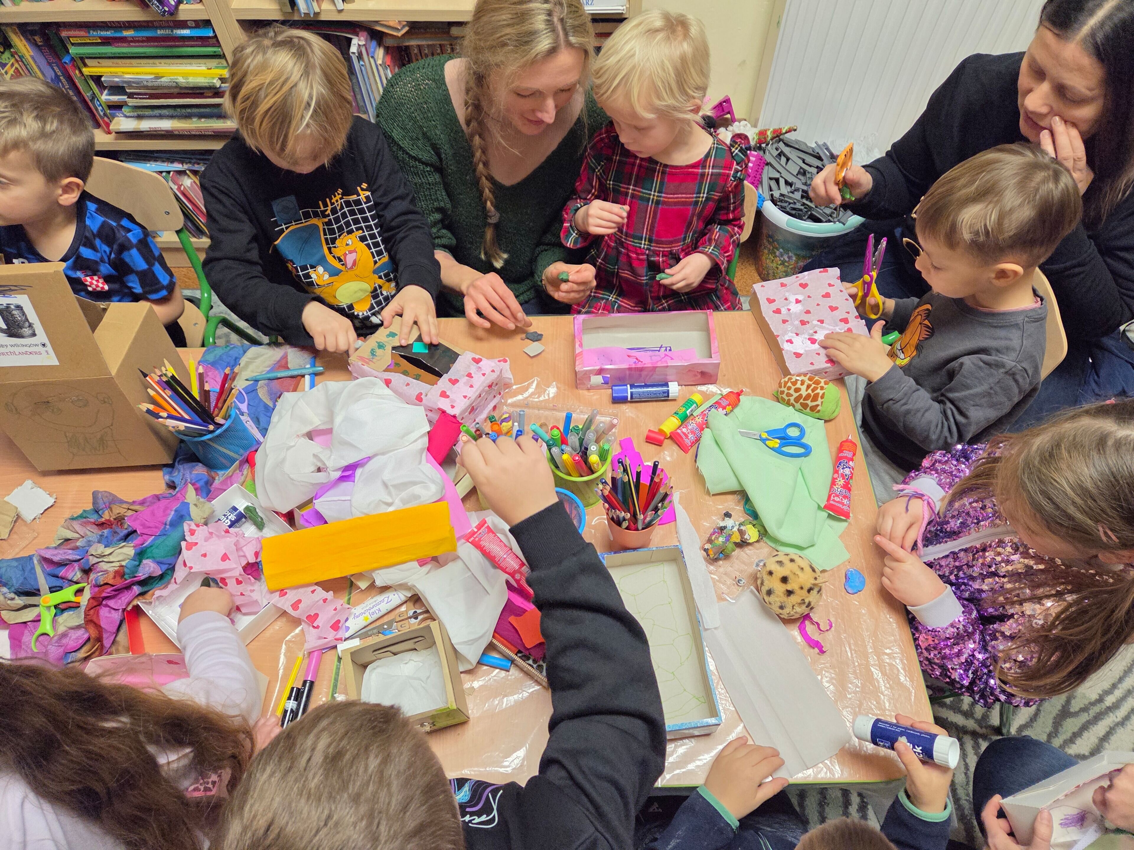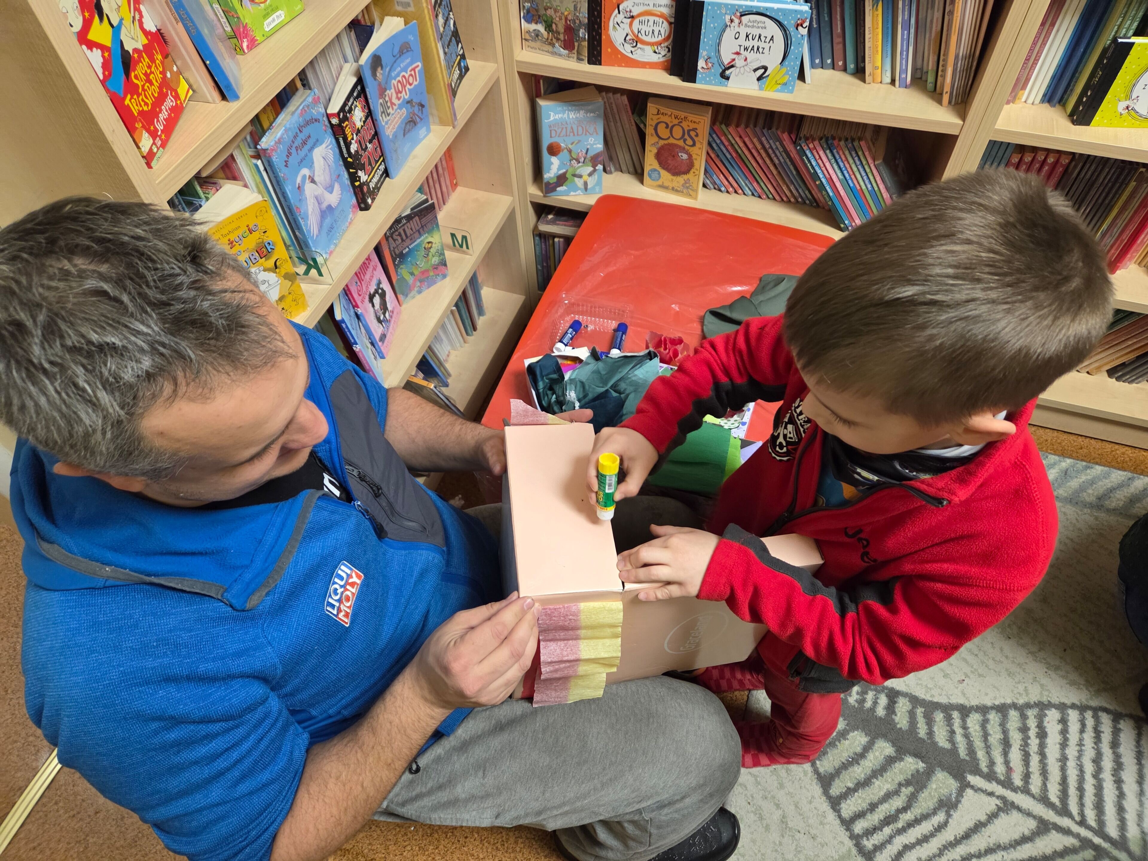 Biblioteka zaprosiła także najmłodszych czytelników wraz z rodzicami oraz swoimi ukochanymi przytulankami do wspólnego świętowania Dnia Pluszowego Misia. W ramach misiowych warsztatów w dniu 25 listopada dzieci mogły stworzyć i ubrać misia po swojemu dzięki Fabryce "Miś i spółka" - magicznemu miejscu, które przeniosło maluchy w bajkowy świat zabawek. Następnie dzieci konstruowały z kartonowych pudełek, kolorowych materiałów i bibuły domki dla swoich pluszowych przyjaciół oraz malowały wyjątkowe niedźwiadki z użyciem farb i widelców. Na koniec zajęć można było wykonać misiowy ślad na śniegu czyli odbić „łapki Puchatka” wykorzystując do tego celu stempelki z ziemniaka. Nie mogło także zabraknąć misiowych dyplomów, którymi zostali obdarowani uczestnicy zabawy. Dziękujemy najmłodszym za przyłączenie się do tego święta i zapraszamy do wspólnego świętowania za rok.