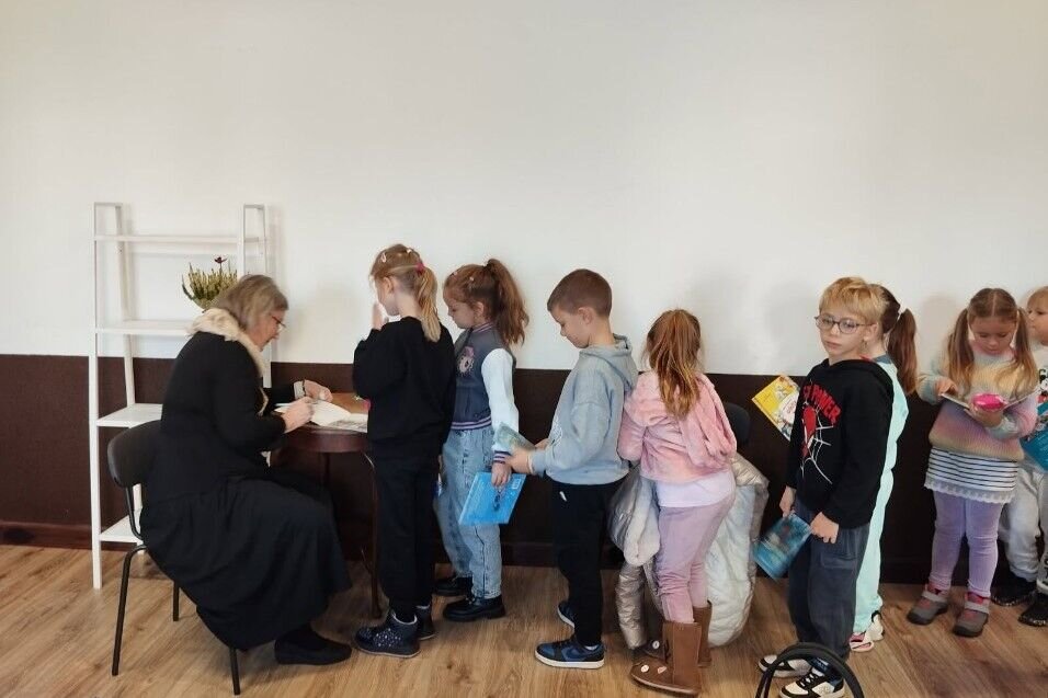 Na zakończenie spotkań dzieci miały okazję zapozować do wspólnego zdjęcia z autorką oraz otrzymać książeczkę z jej autografem.