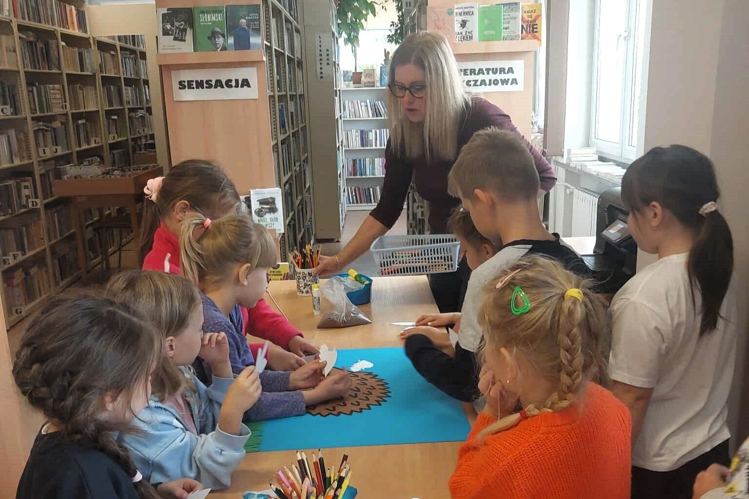 25 września w pomieszczeniach filii w Podłężu, podczas zajęć bibliotecznych dla klasy „0” ze Szkoły Podstawowej, zagościła jesień. Głównym bohaterem spotkania był jeż, którego dzieci poznały dzięki lekturze opowiadania Ewy Czajki pt. „Wiktor ze schroniska”. Historia jeżyka Wiktora bardzo wzruszyła dzieci i stała się tematem przewodnim zajęć. Zerówkowicze wykonali piękne prace plastyczne i pomogli jeżykowi przygotować bezpieczne schronienie na jesienny czas. W rytm piosenki „Idzie jeż” wzięli udział w zabawie ruchowej, która pozwoliła uwolnić nadmiar energii i przybliżyła zwierzątko jakim jest jeż oraz środowisko i rytm jego życia.