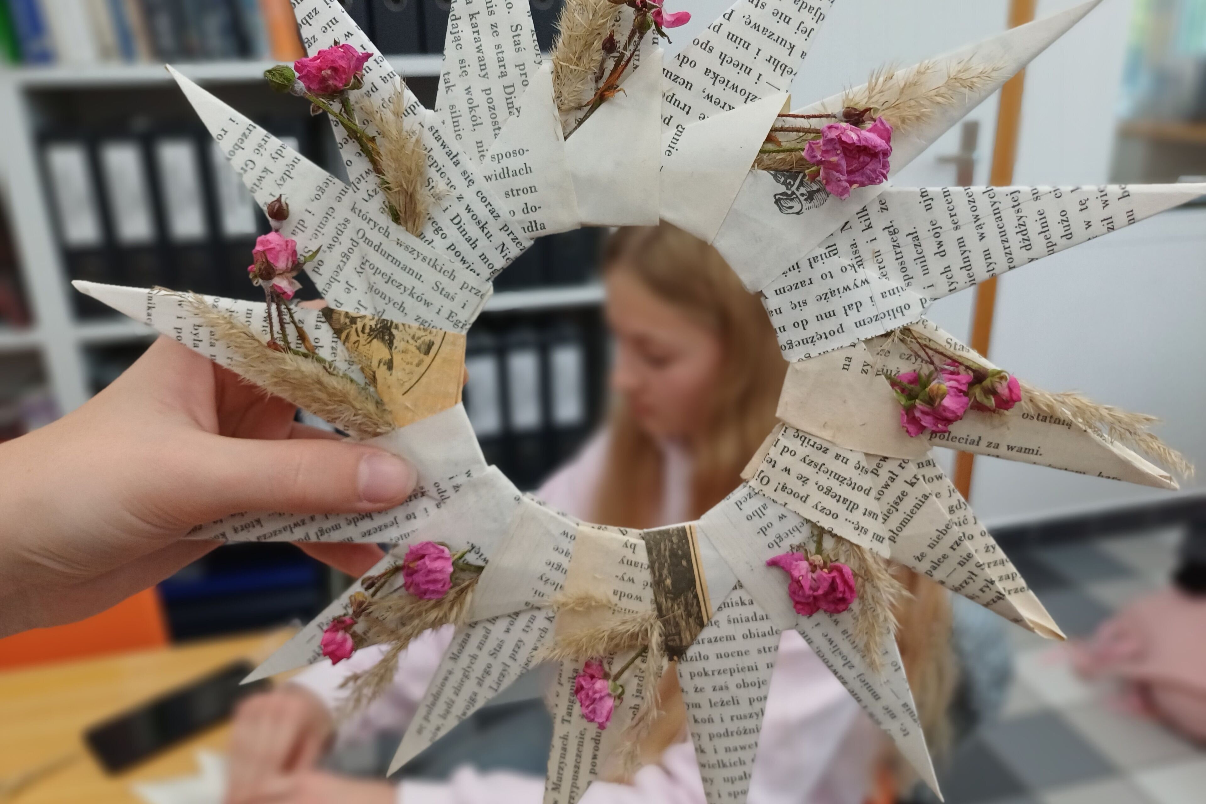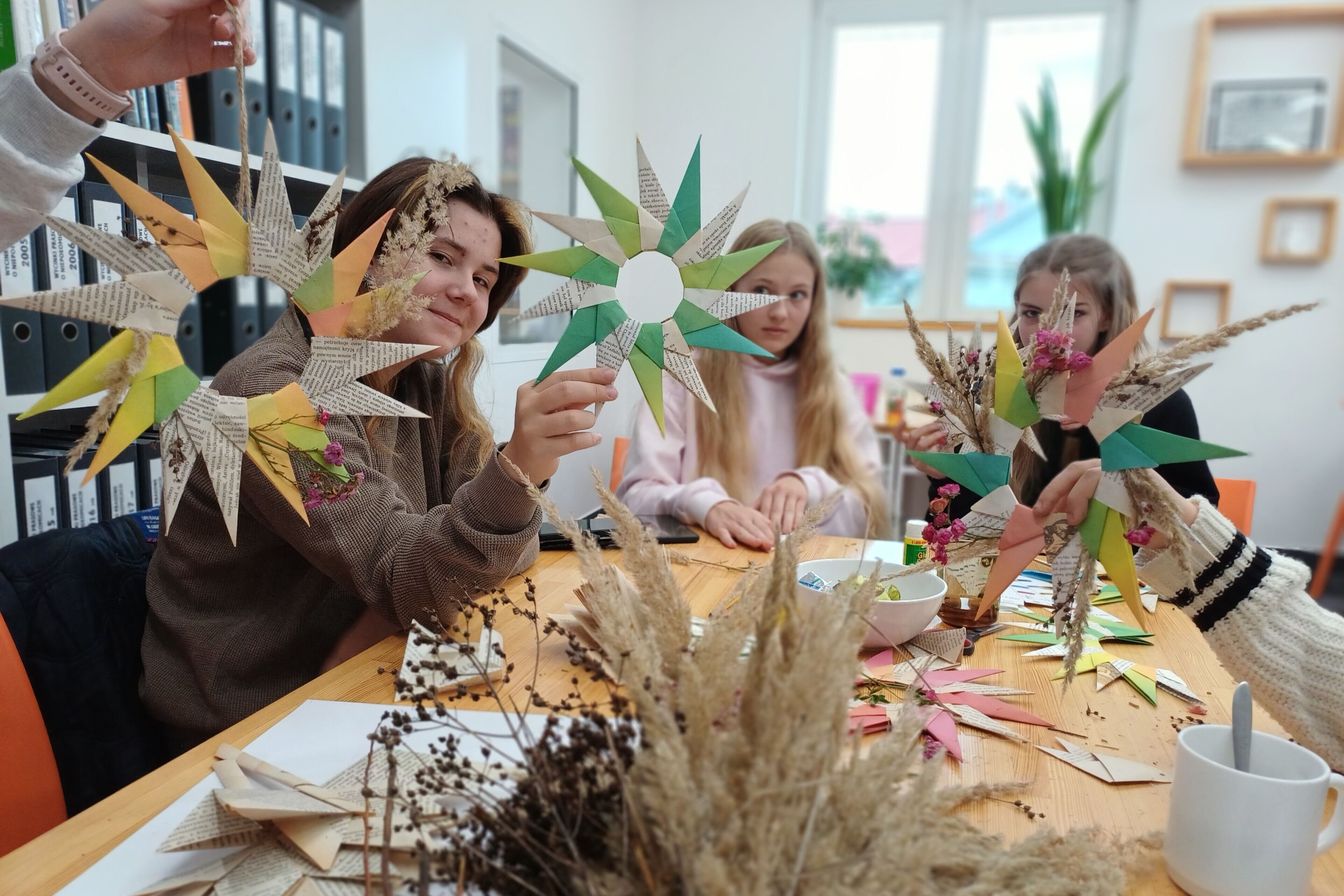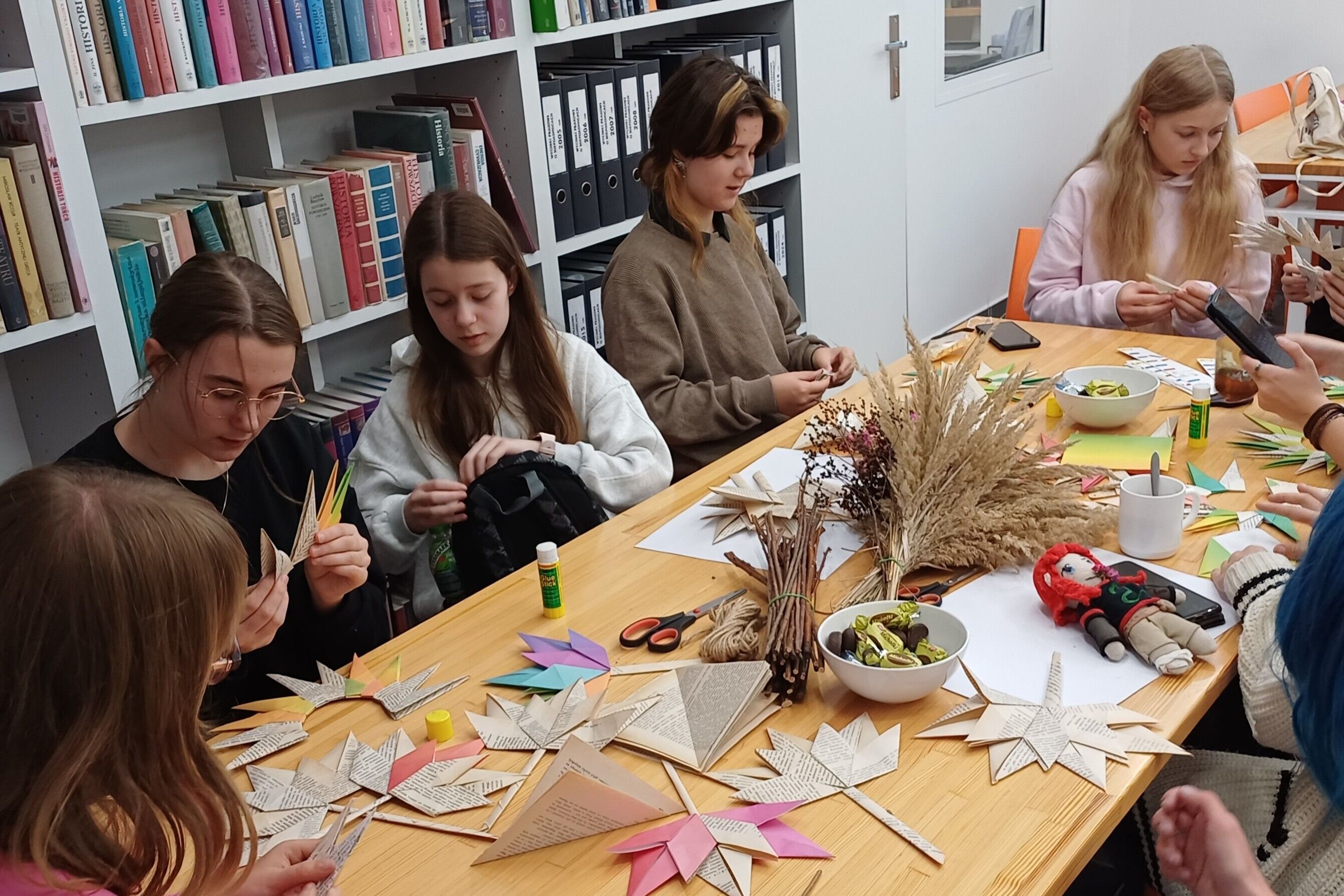 Kto by pomyślał, że stara książka może stać się dziełem sztuki? Podczas warsztatów uczestnicy dawali drugie życie pożółkłym stronom – tworząc papierowe ozdoby, kartki i małe artystyczne cuda. Było twórczo, kolorowo i bardzo jesiennie! Rozmowy o książkach, wspólna praca, uśmiech i odrobina słodkości sprawiły, że to popołudnie upłynęło w wyjątkowej, ciepłej atmosferze. To właśnie takie chwile pokazują, że biblioteka to przestrzeń pełna pomysłów i inspiracji!