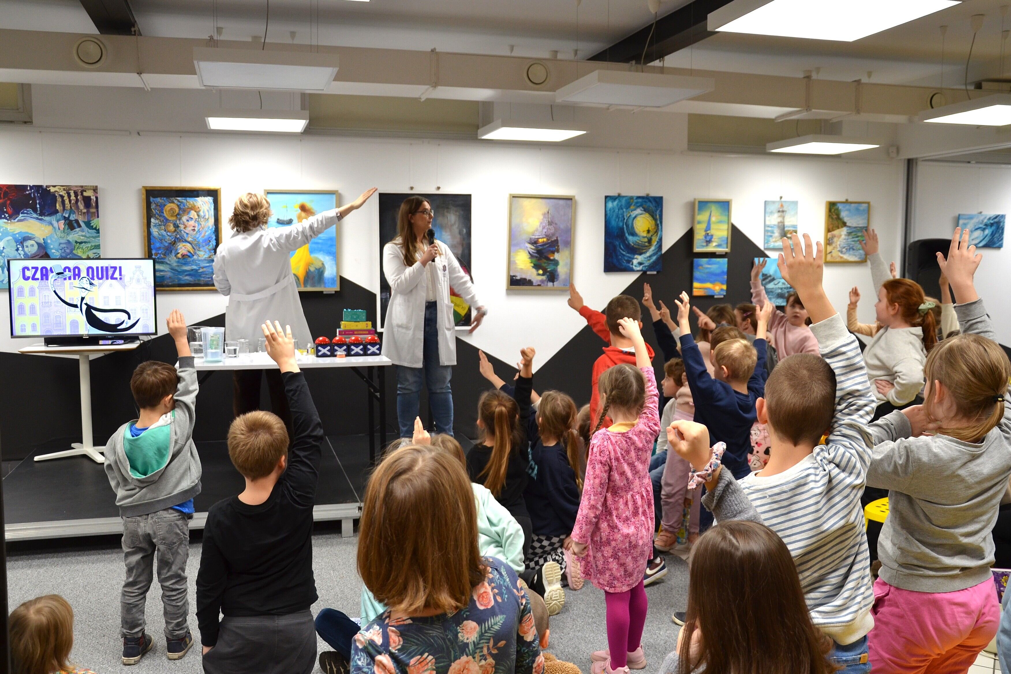 Gościliśmy dr. Adama Mirka – naukowca, popularyzatora wiedzy i autora bestsellerowych książek dla dzieci, który zabrał nas w fascynującą podróż po świecie ludzkiego ciała, doświadczeń i naukowych zagadek. Dzieci z entuzjazmem brały udział w eksperymentach, chętnie odpowiadały na pytania i z radością odbierały nagrody od autora. Spotkanie nawiązywało do jego książek: „Bebechy”, „Glutologia” i „Coś tu śmierdzi” – pełnych humoru, wiedzy i naukowej pasji. Dziękujemy za to wyjątkowe spotkanie i pokazanie, że nauka to wspaniała przygoda.