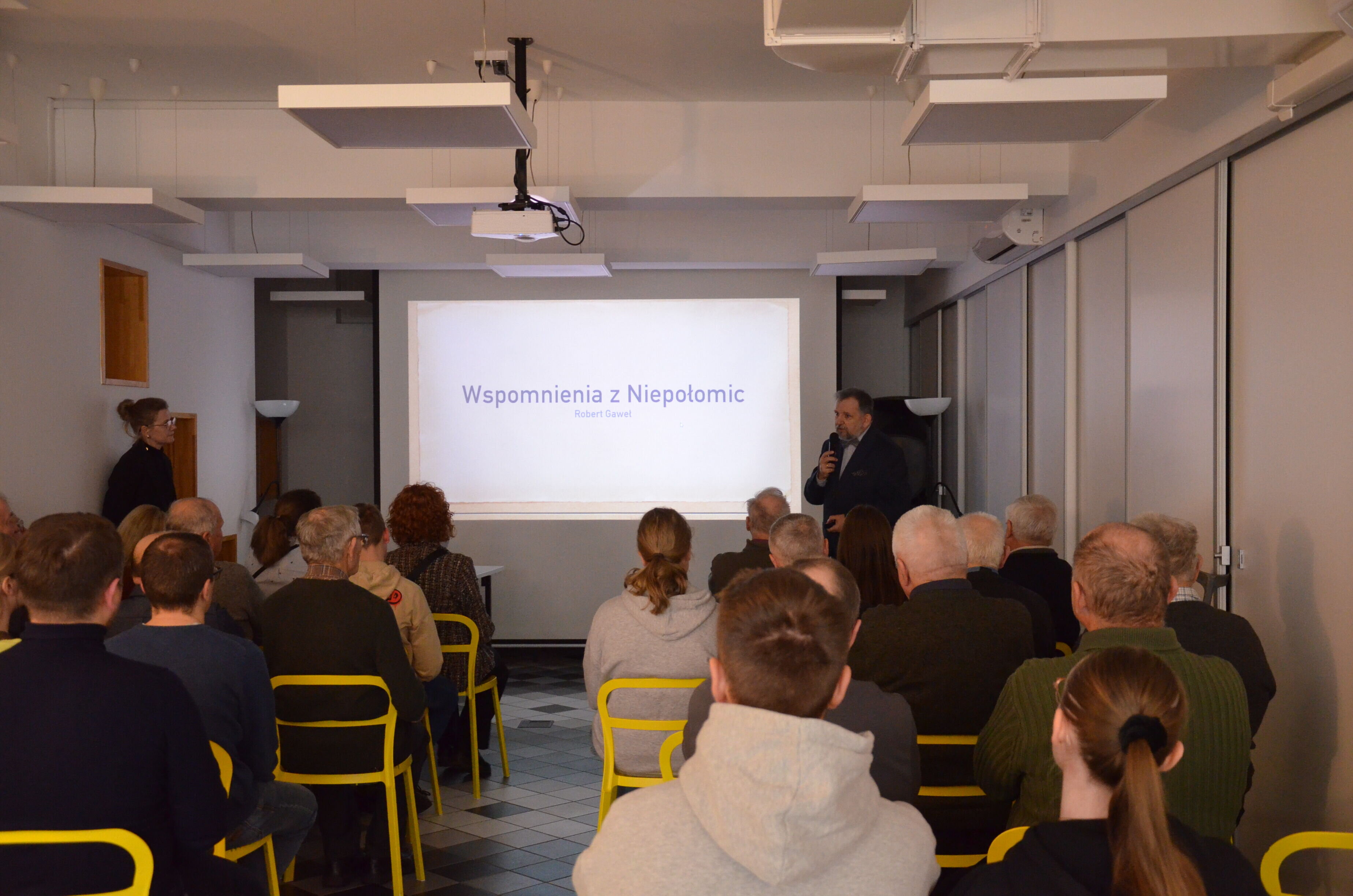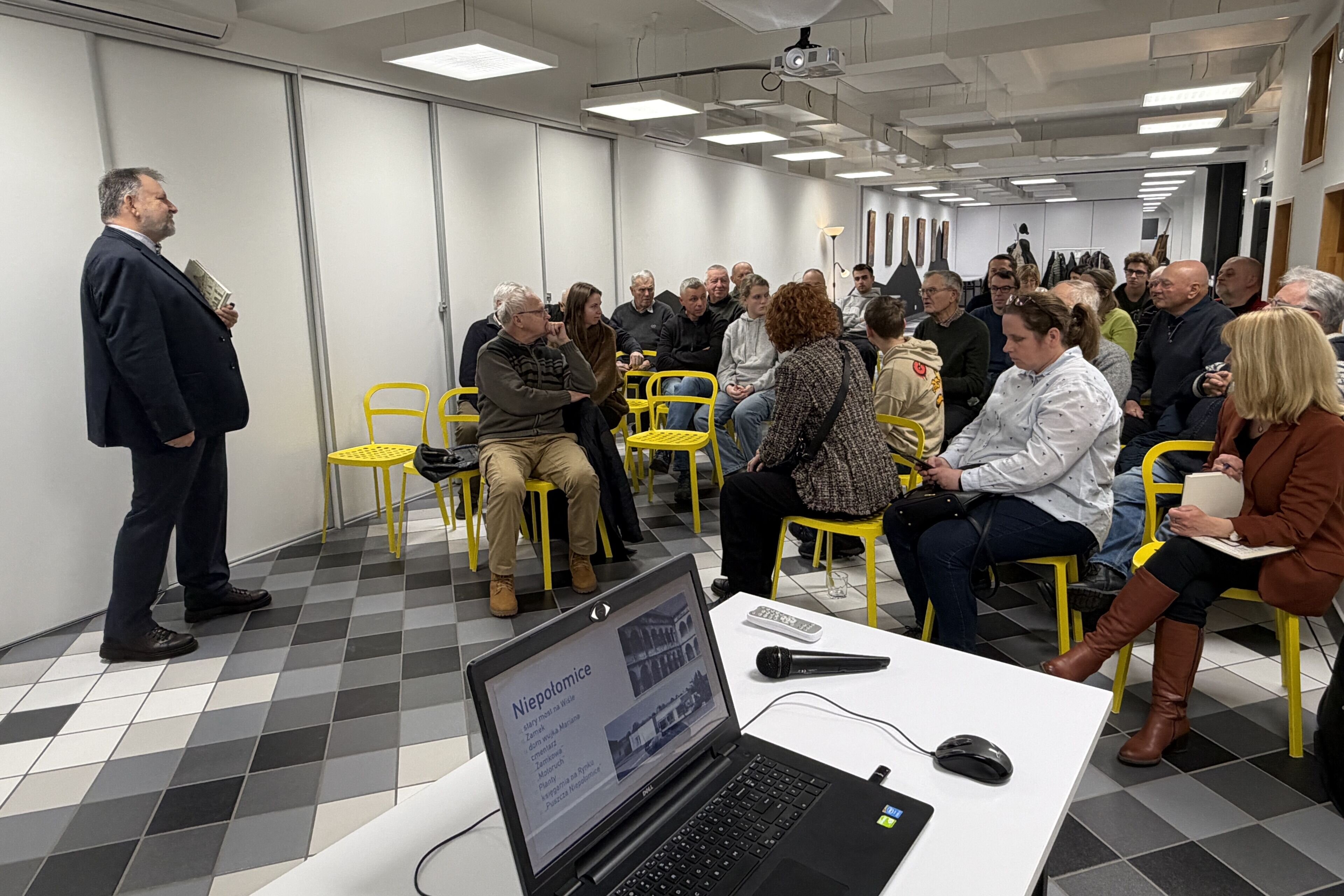 Spotkanie miało niezwykle osobisty charakter. Robert Gaweł zadedykował swoje wystąpienie babci Franciszce, w której domu na Jazach spędził pierwsze lata życia. Zaprezentował również fotografie przedstawiające jego dziadków, Franciszkę i Andrzeja Gawłów. Choć losy zawodowe związały naszego prelegenta z Krakowem, to właśnie Niepołomice i „dom babci” pozostały dla niego fundamentem tożsamości.