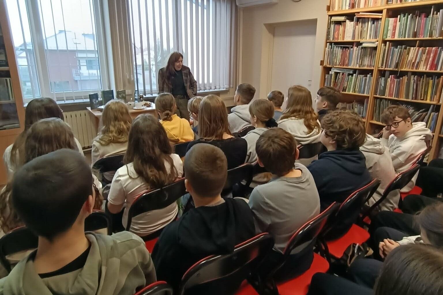 Wielka frajdę sprawiło uczniom omówienie książki „Historie niezwykłe”. Pani Katarzyna przywołała klimat letnich obozów i opowieści z dreszczykiem, wspominając miejskie legendy o „czarnej wołdze”, tajemniczej „złotej nodze” czy mrożącej krew w żyłach „czarnej łapie”. Pisarka zdradziła również, że unika podróży samochodem. Wybiera pociągi, ponieważ to właśnie tam, w rytmicznym stukocie kół, najlepiej słucha się ludzkich historii – tych prawdziwych, jak opowieść o „Zbyszku Grzybiarzu”, oraz tych nieco podkoloryzowanych, które stają się dla niej literacką inspiracją.