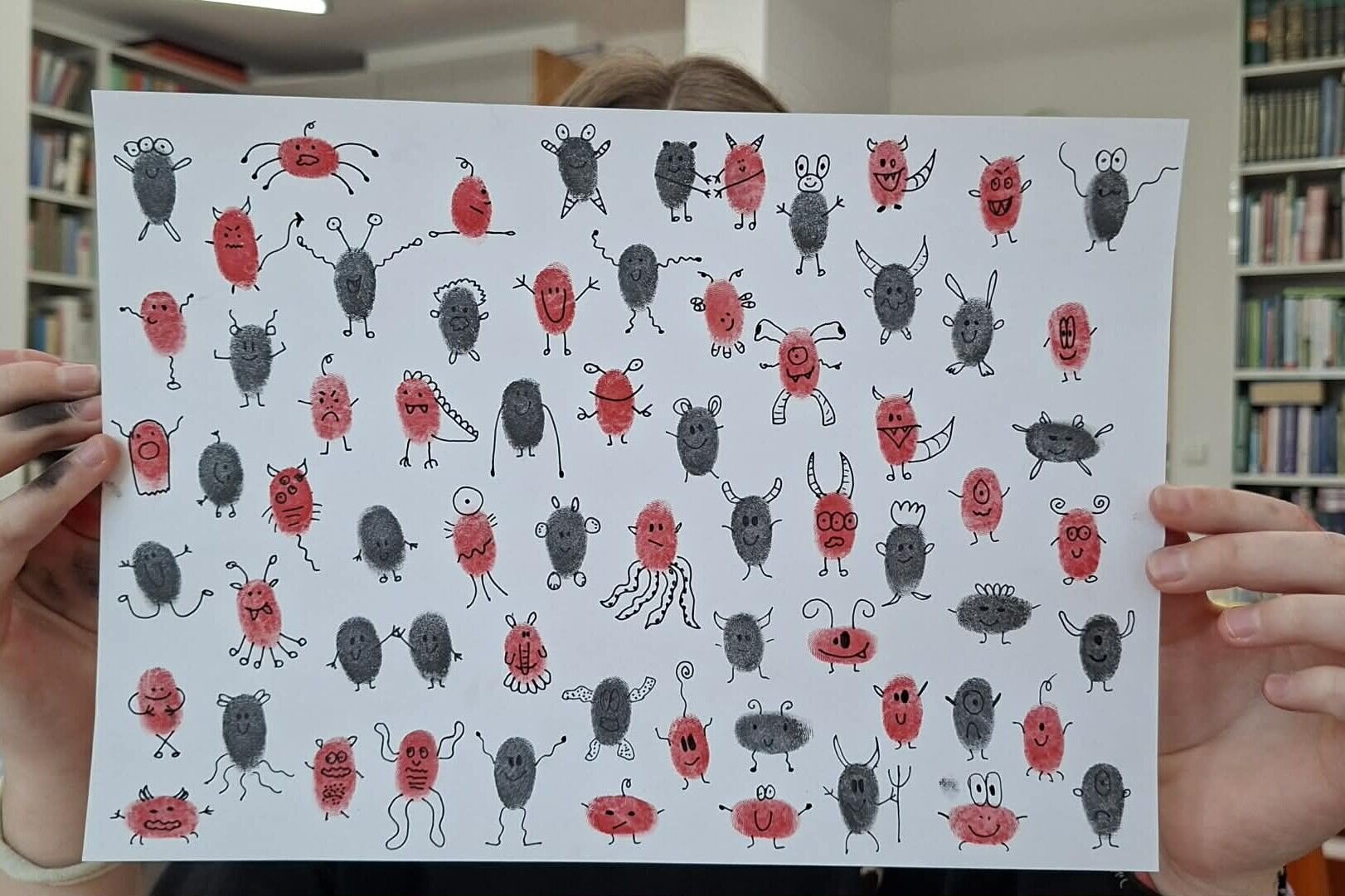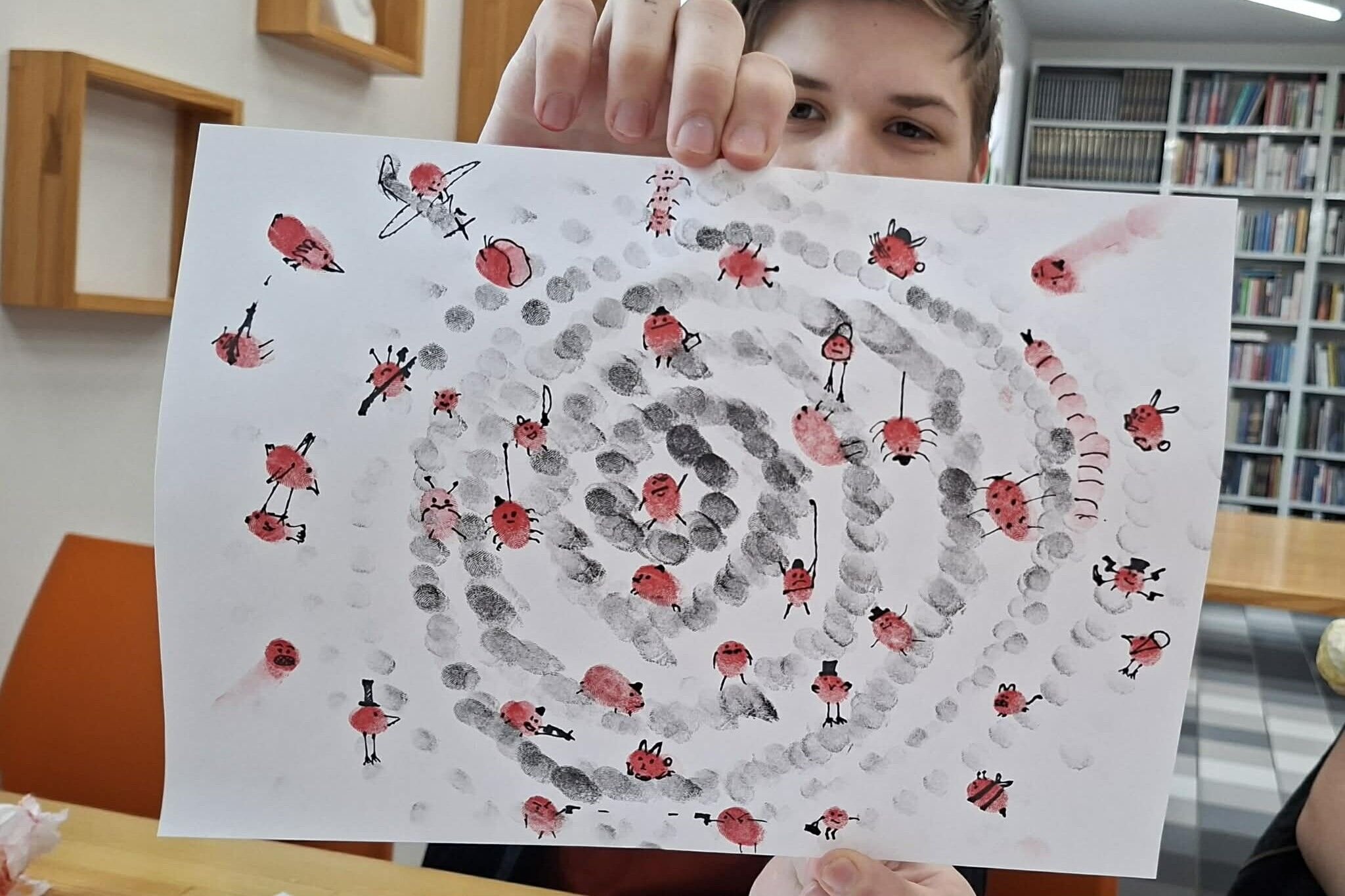 Na koniec daliśmy trochę odpocząć głowom i przeszliśmy do części kreatywnej. Nawiązując do motywu przewodniego spotkania, wykonywaliśmy odciski palców, zamieniając je w małe, kreatywne formy. Było przy tym sporo śmiechu i dobrej energii. Kreatywność + dobra zabawa = najlepsze zakończenie spotkania.
