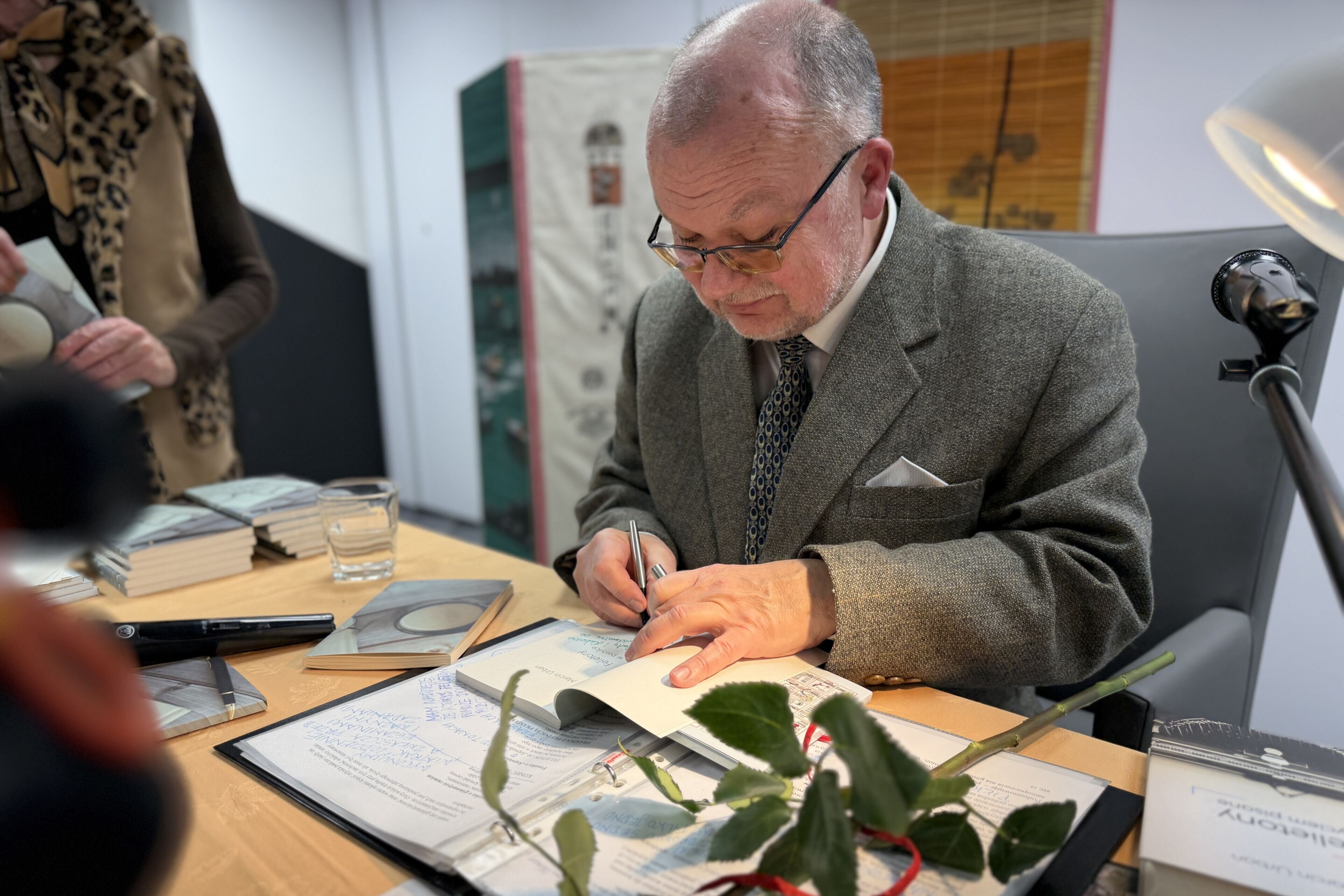 Podczas spotkania nasz Gość czytał na głos fragmenty najciekawszych tekstów, komentował i na bieżąco wymieniał swoje myśli z licznie zgromadzoną publicznością. Każdy komentarz okraszony