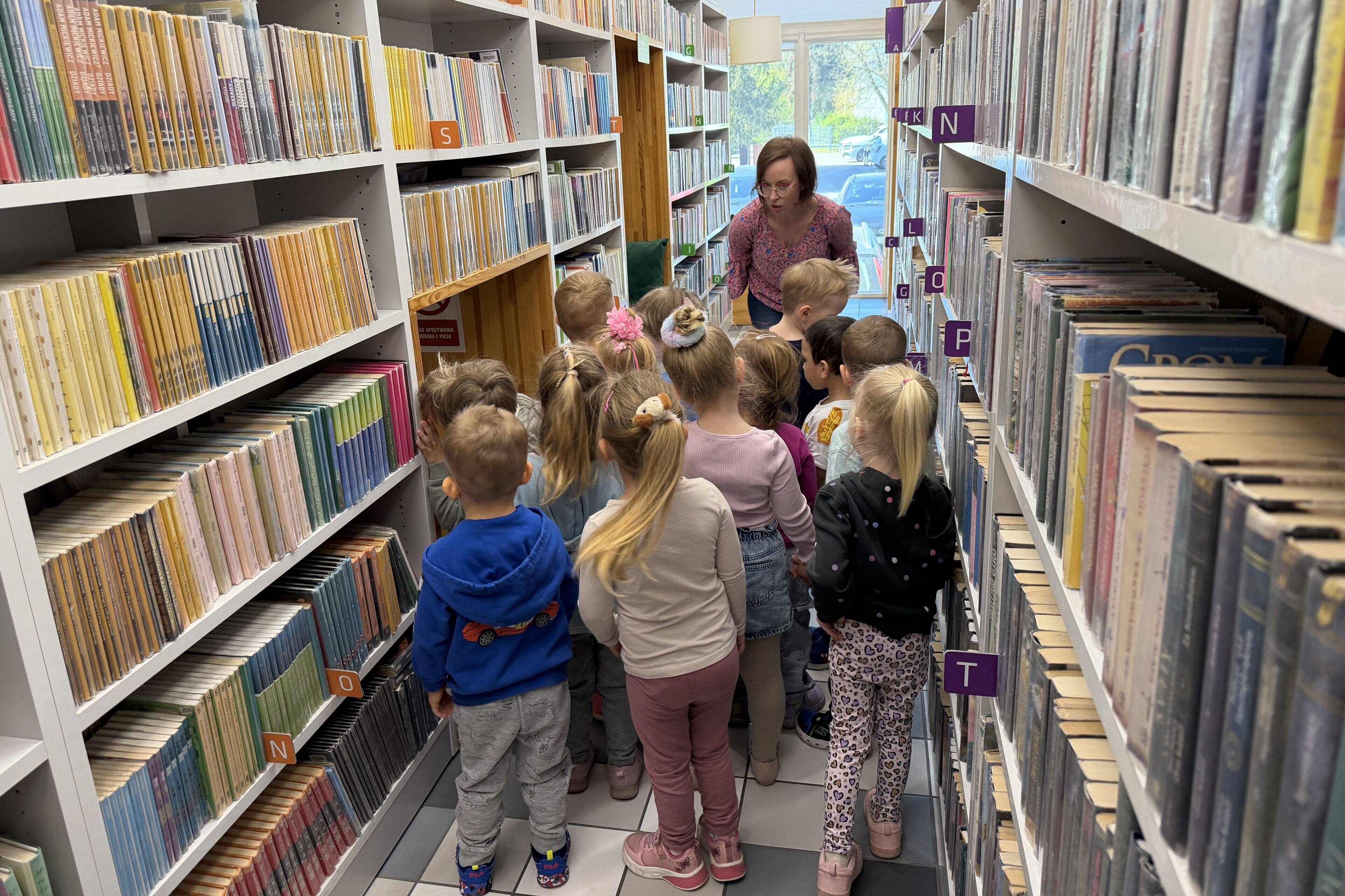Dla wielu z nich była to pierwsza wizyta w bibliotece, z pewnością tez tak ogromna liczba książek oraz wysokie półki i labirynt regałów zrobiły na maluchach niemałe wrażenie. Wizyta była świetna okazja do rozmowy o tym, jak należy postępować z książkami.