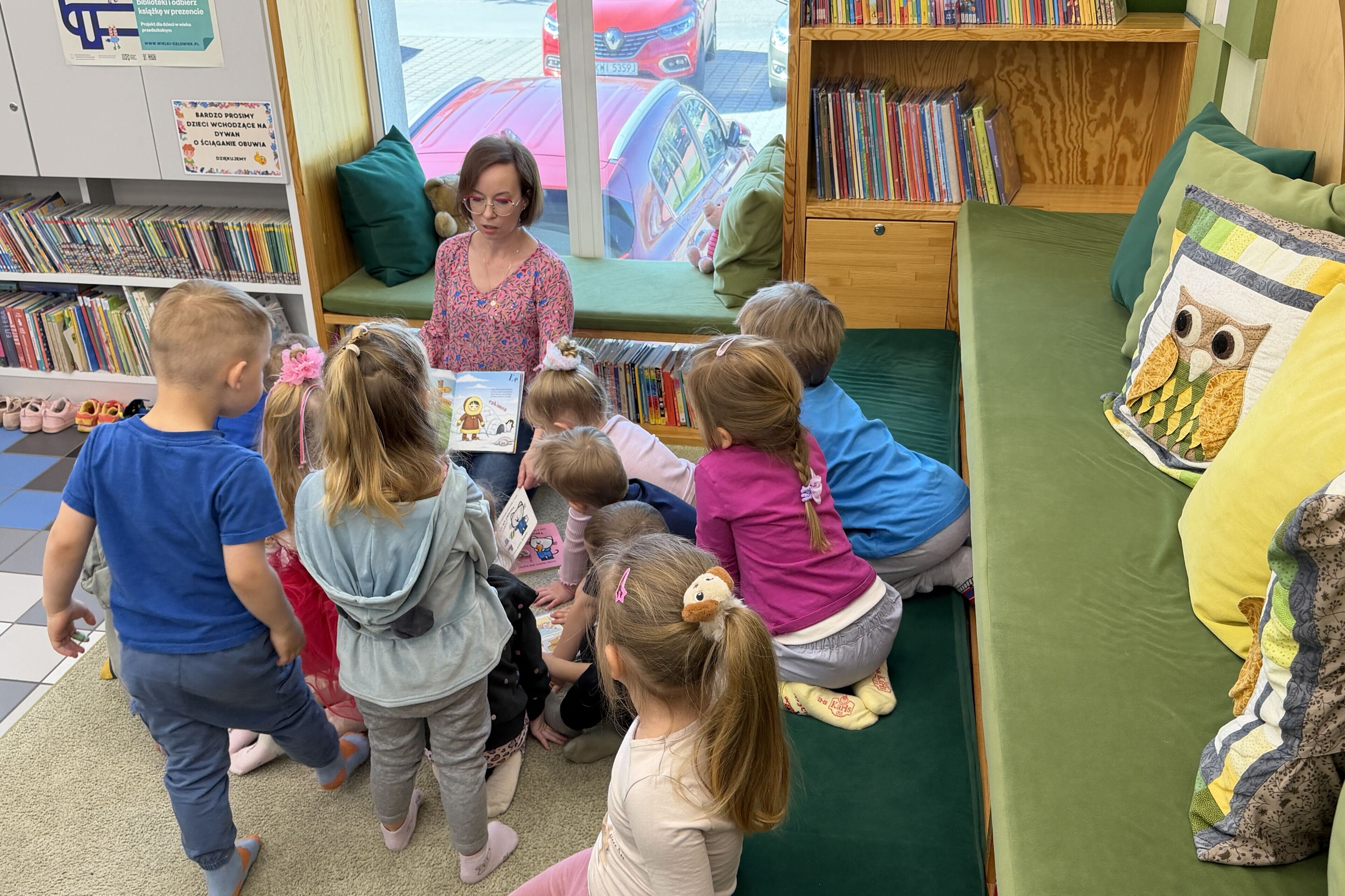 23 kwietnia naszą bibliotekę odzwiedziła radosna ekipa „Słoneczek” z przedszkola Eko-Park. Nie była to jednak zwykła wizyta – mali goście pojawili się u nas dokładnie w dniu, w którym swoje święto mają książki. Przyznajcie sami, że trudno o lepszy moment na takie spotkanie niż Światowy Dzień Książki i Praw Autorskich.