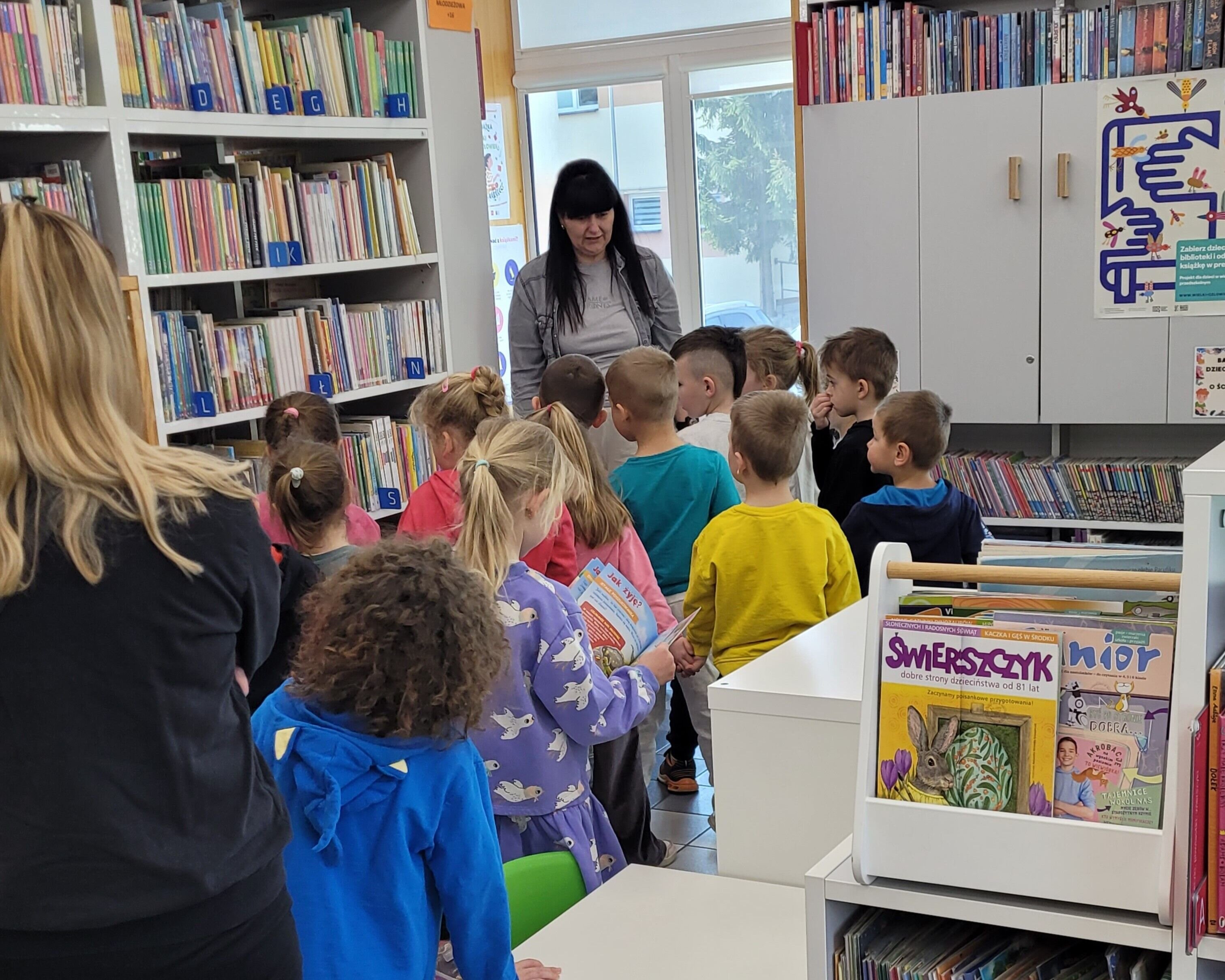 Podczas wizyty dzieci miały okazję zwiedzić wszystkie działy biblioteki oraz dowiedzieć się, jak można zostać jej czytelnikiem. Przedszkolaki poznały również szczegóły akcji „Mała Książka – Wielki Człowiek” i dowiedziały się, że na nowych czytelników czeka specjalna wyprawka czytelnicza.