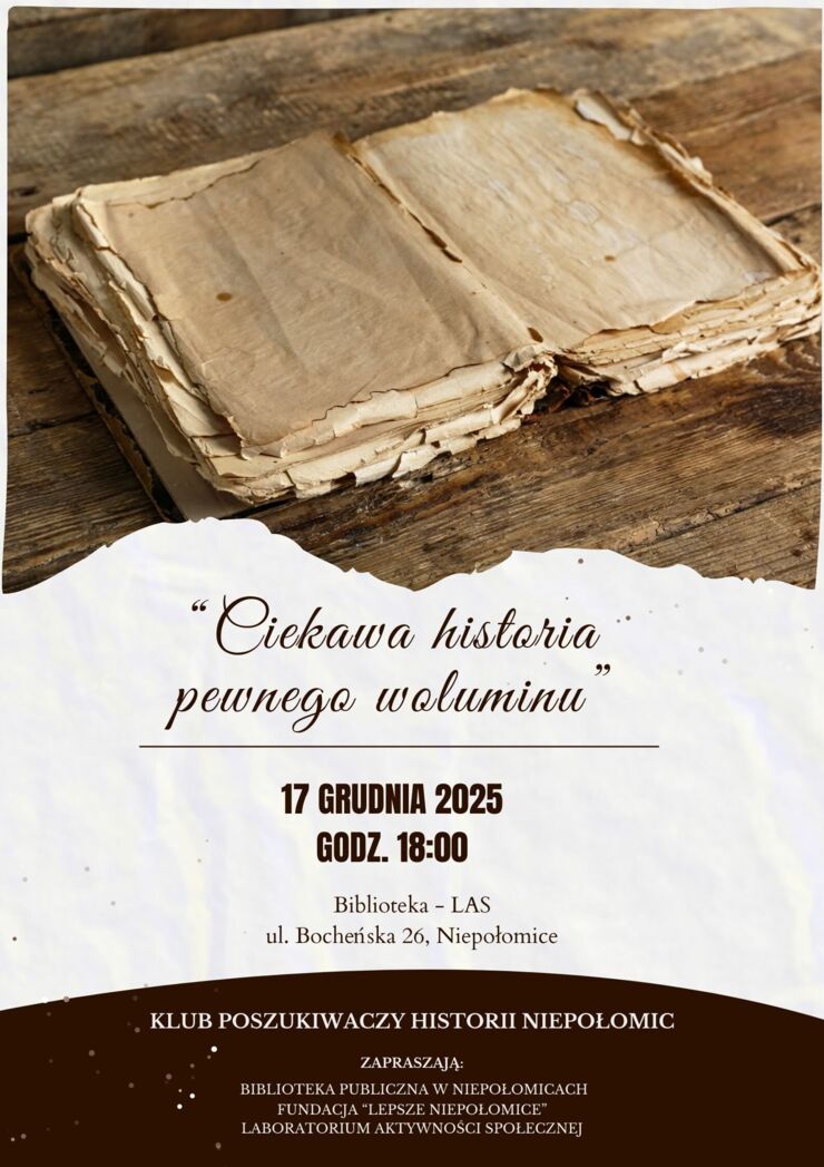 Temat spotkania: „Ciekawa historia pewnego. woluminu”. Tym razem zagłębimy się w niezwykłe dzieje unikatowej broszurki „Z puszczy Niepołomskiej” – małego, lecz niezwykle cennego woluminu, który skrywa fascynującą opowieść o naszej okolicy.