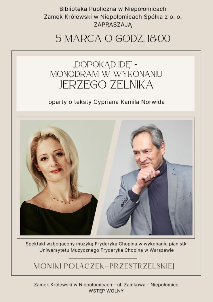 To nie jest zwykła recytacja. To intymny dialog słowa z dźwiękiem, oparty na wierszach i fragmentach pamiętników poety. Usłyszymy teksty trudne, głębokie i niezwykle aktualne, które w wykonaniu Zelnika nabierają nowej mocy.
