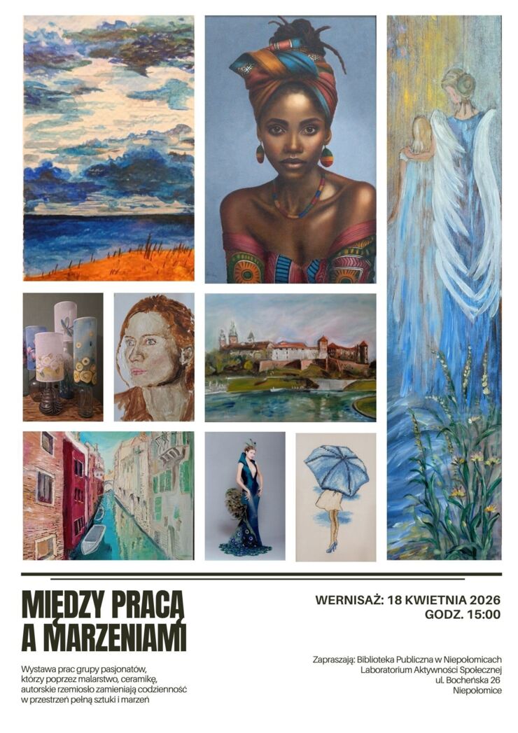 Zapraszamy na wyjątkowe spotkanie ze sztuką, która rodzi się „pomiędzy”. Wystawa „Między pracą a marzeniami” to prezentacja grupy pasjonatów, którzy tworzą w wolnych chwilach, odnajdując w sztuce sposób na zatrzymanie czasu i oddech od codziennych obowiązków.