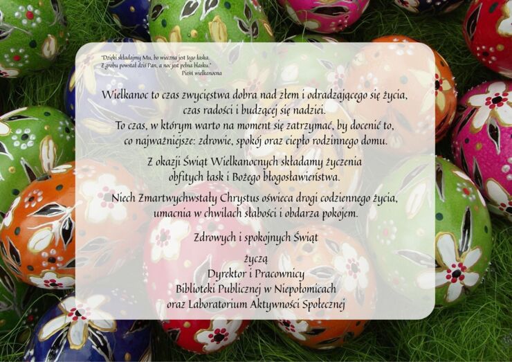 Z okazji Świąt Wielkanocnych składamy życzenia obfitych łask i Bożego błogosławieństwa.
